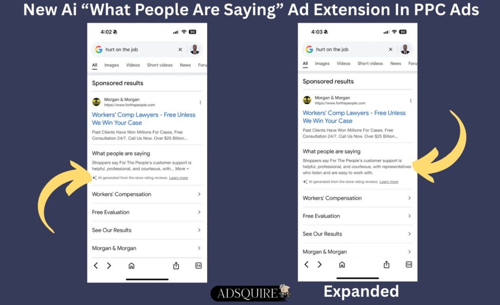 - Behavioral shifts: Track how users interact with “Hide” vs. “Expand” buttons—are LSAs seeing more engagement relative to PPC? At ADSQUIRE, we have a method to monitoring LSA CTRs that a lot of people miss. We will be watching.