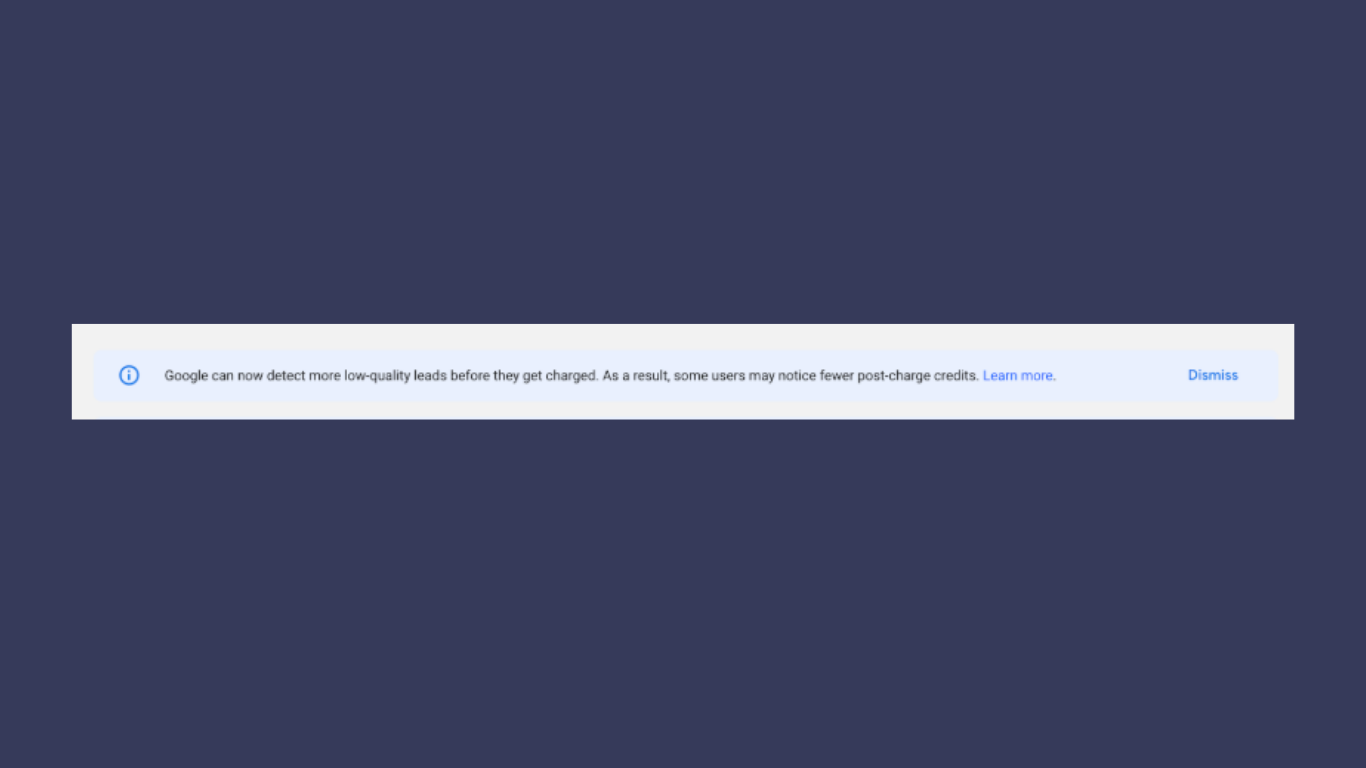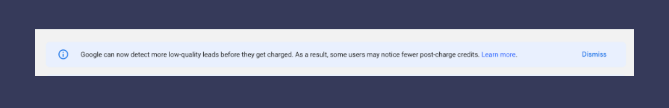 “Google can now detect more low-quality leads before they get charged. As a result, some users may notice fewer post-charge credits.”