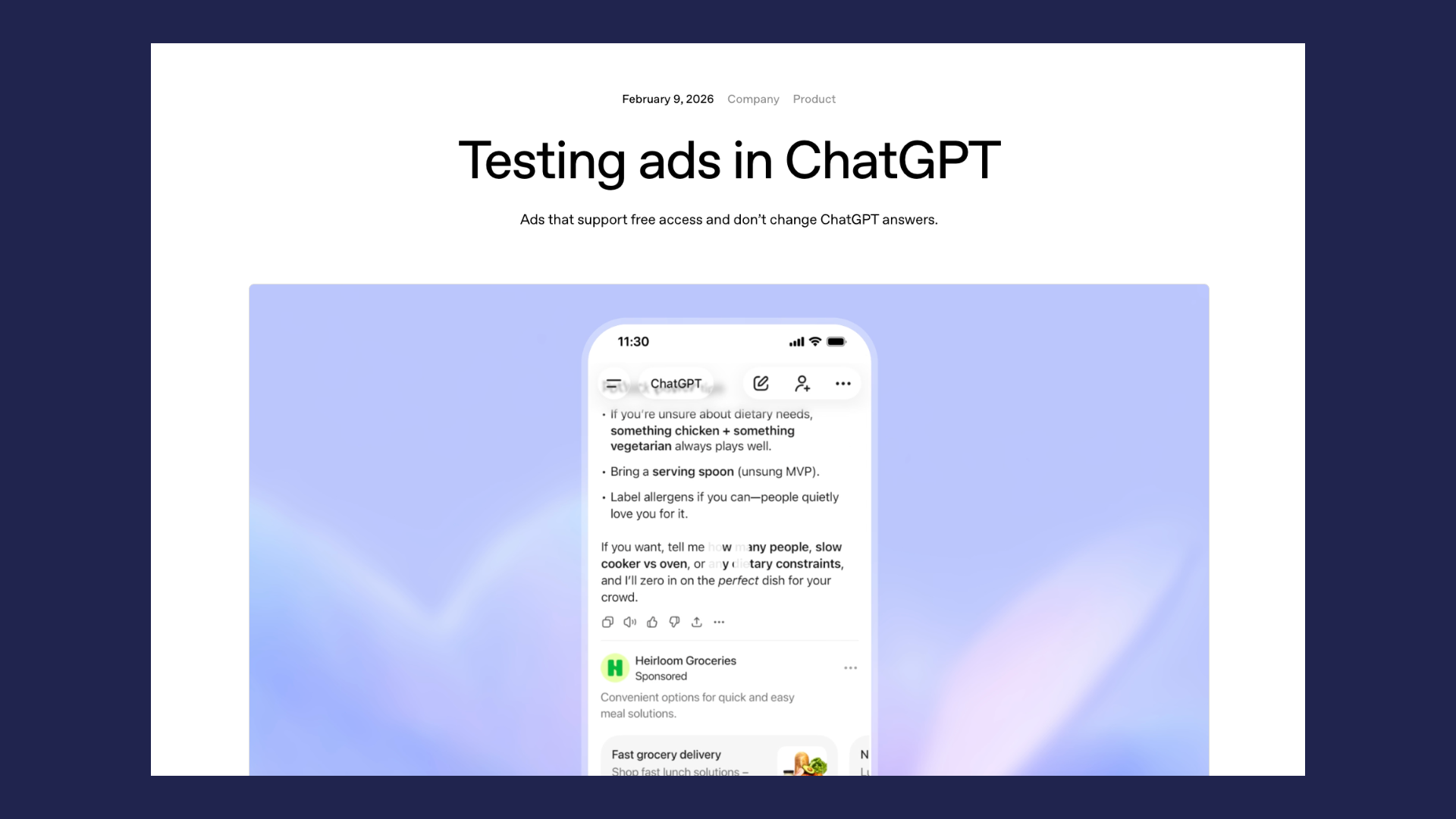 A new advertising channel may soon enter the digital landscape: OpenAI plans to begin testing ads inside ChatGPT responses for logged-in adult users in the U.S. on Free and Go tiers.